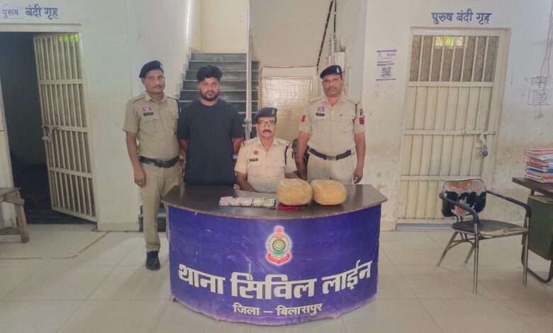 बिलासपुर। शहर में नशे के अवैध कारोबार के खिलाफ चलाए जा रहे अभियान के तहत सिविल लाइन पुलिस को बड़ी सफलता हाथ लगी है। पुलिस ने घेराबंदी कर एक शातिर तस्कर को गिरफ्तार किया है, जिसके कब्जे से भारी मात्रा में गांजा और नकदी बरामद की गई है।
