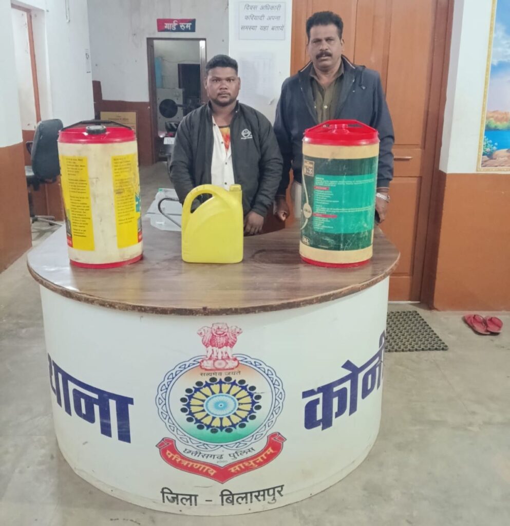 बिलासपुर | अवैध शराब के कारोबार पर अंकुश लगाने के लिए थाना कोनी पुलिस द्वारा लगातार सख्त कार्रवाई की जा रही है। इसी कड़ी में कोनी पुलिस ने बड़ी सफलता हासिल करते हुए 55 लीटर कच्ची महुआ शराब के साथ एक आरोपी को गिरफ्तार किया है। जप्त की गई शराब की अनुमानित कीमत लगभग 11 हजार रुपये बताई गई है।