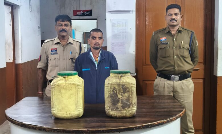कोनी पुलिस ने अवैध महुआ शराब बेचते आरोपी को गिरफ्तार कर 30 लीटर शराब जप्त की .