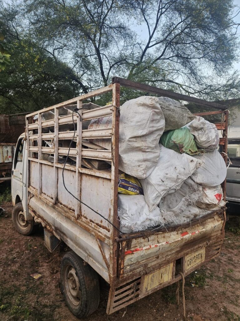 घेराबंदी के दौरान सफेद रंग का छोटा हाथी वाहन क्रमांक CG 10 C 5074 को रोककर तलाशी ली गई, जिसमें लगभग 1.5 क्विंटल पुराने स्टील बर्तन, कढ़ाई एवं अन्य कबाड़ सामग्री बरामद हुई। जब्त सामग्री की अनुमानित कीमत ₹51,000 तथा वाहन की कीमत ₹30,000 मिलाकर कुल ₹81,000 आंकी गई।