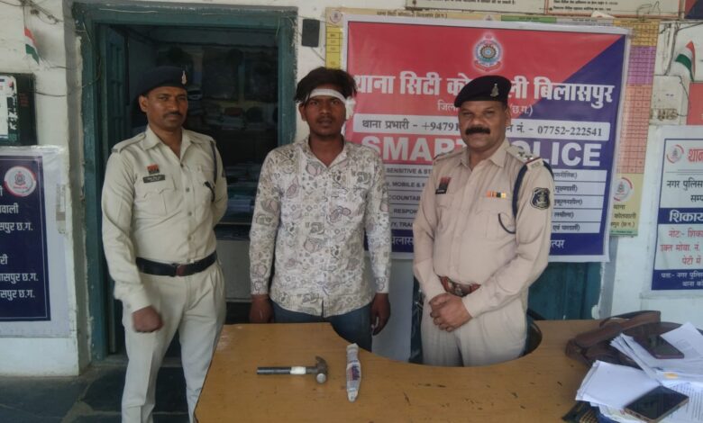 बिलासपुर। सिटी कोतवाली पुलिस ने पुराना बस स्टैंड क्षेत्र में धारदार चाकू से हमला कर मारपीट करने वाले आरोपी को गिरफ्तार कर जेल भेज दिया है। आरोपी के कब्जे से एक धारदार चाकू और घटना में प्रयुक्त हथौड़ी जब्त की गई है।
