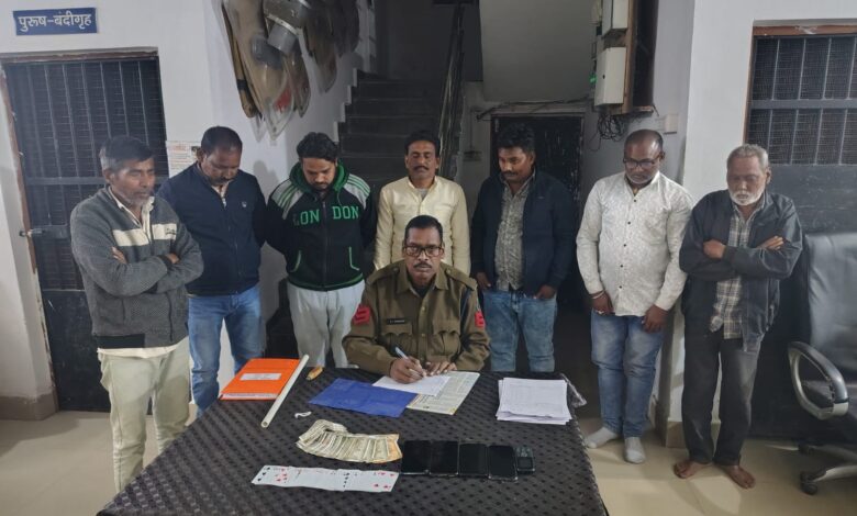 दिनांक 08 जनवरी 2026 को टाउन भ्रमण के दौरान मुखबिर से सूचना प्राप्त हुई कि लावर तालाब के पास कुछ लोग 52 पत्ती ताश के माध्यम से पैसों का दांव लगाकर जुआ खेल रहे हैं। सूचना पर त्वरित कार्रवाई करते हुए पुलिस टीम ने घेराबंदी कर रेड की, जहां मौके पर 7 जुआड़ी जुआ खेलते पाए गए। पुलिस ने मौके से नगद राशि व ताश पत्तियां जब्त कर सभी आरोपियों को गिरफ्तार कर वैधानिक कार्रवाई की।