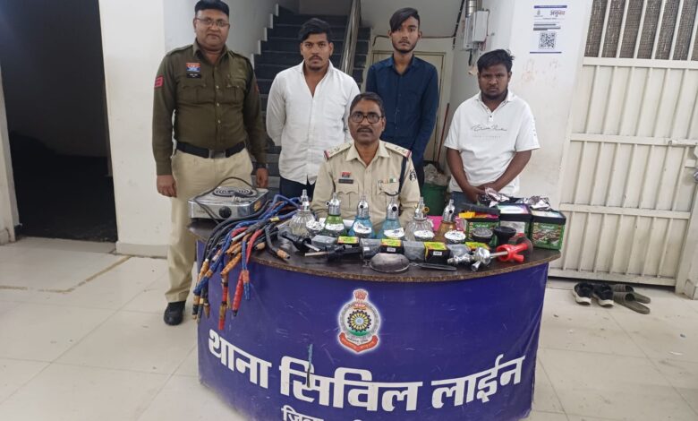 सिविल लाइन पुलिस की बड़ी कार्रवाई, अवैध हुक्का बार पर छापा, तीन गिरफ्तार .